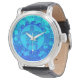 Ocean blue turtle design inspired by tribal Polynesian tattoos in the centre of a Maori Sun symbol. Ocean blue background of blue Hawaiian Honu sea turtles and blue hibiscus flowers.