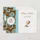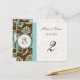 Monogram New Sizes Elegant Vintage Aqua Blue Damask on Brown Wedding Table Number Cards