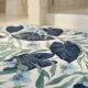 This elegant botanical design features flowing tropical leaves layered with soft blue flowers in a refined, nature-inspired composition. The artwork blends deep navy foliage with gentle sage greens and pale blue blooms, creating a calming yet sophisticated visual balance.