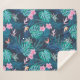 Blue Tropical Flower Garden Pattern Sherpa Blanket