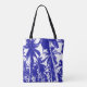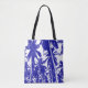 Palm Trees Design Shoulder Bag in Blue and White. Design shows a silhouette effect pattern of leaves.