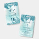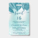 VIP passes. Tropical leaves blue glitter ombre script Sweet 16 VIP design.