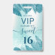 Blue Tropical leaves glitter script Sweet 16 VIP ID Badge