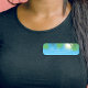 This badge looks professional and it's in keeping with my branding. The magnetic attachment is strong and stays in place all day. The quality of the materials and the colors were exactly as pictured. I couldn't be happier! The printing is clear and easy to read