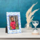 Have the this adorable blue and turquoise linked heart pattern border as the frame of your custom photo surrounded by a fine blue border. Replace the template photo with your favourite family (member) image for a custom design. Personalise the text or click customise to select a font style, size, and colour you prefer. Placeholder photo is courtesy of website pixabay.com.