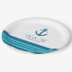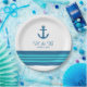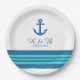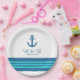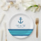 Elegant and classic Nautical Anchor Wedding Paper Plates with a simple boat anchor and an array of stripes in dark navy blue and turquoise. These nautical beach themed plates can be easily customised with your wedding details. For more customisation options, click on the Customise It button.