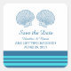 Blue Turquoise Nautical Seashells Save the Date Square Sticker