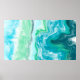 Blue, Turquoise Sea Waves Digital Fluid Art Poster