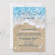 Two less fish in the sea written in dark blue type accents this Post Wedding Reception Invitation on a background of aqua blue ocean waves, beach sand, seashells, starfish and sand dollars, making it perfect for the beach, tropical or destination elopement.The back of this invitation is further decorated with blue water and a pair of cute starfish. It is shown on the matte paper; however, the weight and texture of the white felt paper is my favourite choice. If additional items are needed for your reception just contact us at prettyfancyinvites@gmail.com with your request.