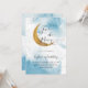 Dreamy boy's 2nd birthday party invitation card featuring watercolor art of blue sky with faux gold moon and stars. The text says "two the moon."