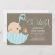 Simply sweet baby shower invitations feature an adorable vector illustration of a baby inside an umbrella and a cute little brown bird. Art © Cocoa Studio