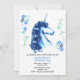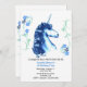 Pretty girl's birthday party invitation, with an illustration of a unicorn's head done in blue, with blue flowering vines, on either side. Personalise all the text, for your child's birthday. Matching custom unicorn paper napkins and cake pops available.