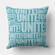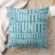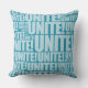 The blue UNITE! typography repeat pattern throw pillow is part of the Quad & Set of Four Wall Art and Throw Pillows collection.