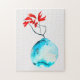 Japanese inspired ikebana flowers in vase blue and red watercolor fine art