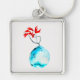 Japanese inspired ikebana flowers in vase blue and red watercolor fine art