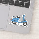 A sticker with a blue vespa scooter illustration