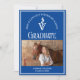 This custom blue veterinary school graduation announcement card features white typography for a class of 2024 graduate above your student photo. Customise with your graduating year under the veterinary medical caduceus and photograph for a great personalised veterinarian card.