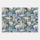 Blue Victorian Christmas Collage Wrapping Paper Sheet