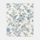 A detailed vintage floral illustration in blue tones, featuring delicately drawn branches, leaves, and blossoms on a light background, creating a classic and elegant botanical look. Toile-de-Jouy
