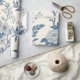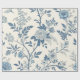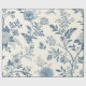 A detailed vintage floral illustration in blue tones, featuring delicately drawn branches, leaves, and blossoms on a light background, creating a classic and elegant botanical look. Toile-de-Jouy