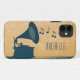 Quirky and unique Vintage Gramophone Case-Mate iPhone 5 Barely There Case in dark blue featuring a silhouette of an old-fashioned gramophone and a cascade of musical notes on a digital art rendered paper background. This chic iPhone case will protect your phone with a dash of vintage flair and is perfect for any music lover. Easy to customise, simply personalise with the text of your choosing. Click on the "Customise It" button to find additional personalisation options.