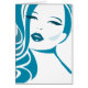 Lovely, retro girly theme in blue cyan and white colours. A beautiful, sensual woman face and neck. Fun, retro drawing.