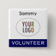 Easily personalise our square pinback badge with your organisation logo, volunteer name, or other custom text. It attaches with a safety pin back. Sold in dark blue and other colours, and all colours are customisable. Our square buttons are 2 inch x 2 inch. Made in USA. No minimum order quantity and no setup fee.