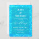 This refined blue wedding design features a luminous water texture with a soft framed layout, creating a modern yet romantic aesthetic. Ideal for seaside resorts, Mediterranean venues, island weddings, and waterfront ceremonies.