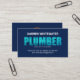 A blue cover features a water logged "PLUMBER" signage near the top of the card. Just above this design is your prestigious name with a slogan option to publicise your services and the contact details near the base.