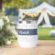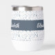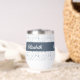 Serene watercolor botanical blue leaves pattern thermal wine tumbler featuring a customizable name, to complement your style in the yoga studio and beyond.