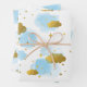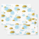 Blue Watercolor Clouds Gold Stars Sky Wrapping Paper Sheet