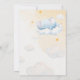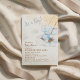 This sweet design was inspired by dreamy nursery illustrations and soft watercolor storybooks. A little blue elephant gently swings among fluffy clouds and golden stars, creating a magical sky scene. Perfect for celebrating a baby boy on the way with a charming, whimsical baby shower invitation.
