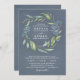 Blue Watercolor Eucalyptus Greenery Wreath Wedding Invitation