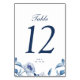 Blue Watercolor Floral Wedding Table Numbers Card
