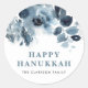 Blue Watercolor Flowers and Foliage Happy Hanukkah Classic Round Sticker