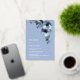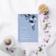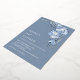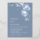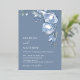 This elegant contemporary wedding invitation features watercolor painted 3D blue flowers and 3D text on a blue background.