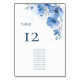 Blue Watercolor Flowers Seating Chart Table Number