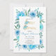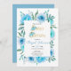 Blue watercolor flowers sweet sixteen birthday invitation. This pretty floral design showcases a floral frame made of blue flowers and succulent leaves and your text. The words "Sweet Sixteen" are in gold in a decorative font with floral bouquets while the name is in script typography.