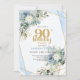 Blue Watercolor Gold Sparkle 90th Birthday Invite