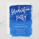 A modern watercolor graduation party invitation in blue and white. Perfect trendy design for a high school or college grad party!