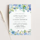 Invite guests to your wedding with this beautiful customisable watercolor blue and white botanical wedding invitation postcard. It features watercolor garland of white, blue and purples roses, anemones and hydrangeas with greenery accents. Personalise by adding names, date, time, venue and other details. This blue hydrangeas invitation postcard is perfect for winter weddings and spring weddings.