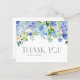 Send thank you to guests and customers with this customisable thank you stationery card. It features watercolor blue and purple hydrangeas, ivory roses and greenery. Personalise this floral thank you card by adding your own event details. This hydrangea thank you card is perfect for winter and spring weddings, bridal showers, baby showers and other events.