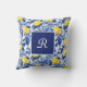 Blue Watercolor Lemon Pattern Monogram Cushion