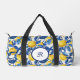Blue Watercolor Lemon Pattern Monogram Duffle Bag