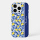 This Blue French Country lemon monogram name iphone case design blends sunny yellow lemons with rich blue leaves for a fresh Mediterranean look. Perfect for those who love personalized French country decor and timeless blue tile elegance.