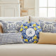 This Blue French Country lemon pattern monogram design blends sunny yellow lemons with rich blue leaves for a fresh Mediterranean look. Perfect for those who love personalized French country decor and timeless blue tile elegance.