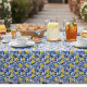 This Blue French Country lemon pattern tablecloth blends sunny yellow lemons with rich blue leaves for a fresh Mediterranean look. Perfect for those who love French country decor and timeless blue tile elegance.