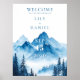 This elegant blue watercolor mountain wedding welcome sign can be personalised with your information in chic typography. Designed by Thisisnotme©