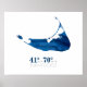 Blue Watercolor Nantucket Map with Coordinates Poster
