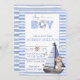 Blue watercolor nautical bear sailboat baby shower invitation